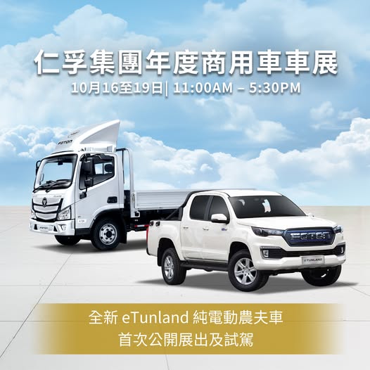 本港商用車市場迎來新衝擊,仁孚集團宣布將於明日(10月16日)起,一連四日於元朗維修中心舉行年度商用車展。屆時,備受矚目的福田(Foton)全新eTunland純電動農夫車將首度在港公開亮相,成為全場焦點。同場亦會展出eAumark 5.5噸純電動貨車,為業界提供更多元化的綠色運輸選擇。